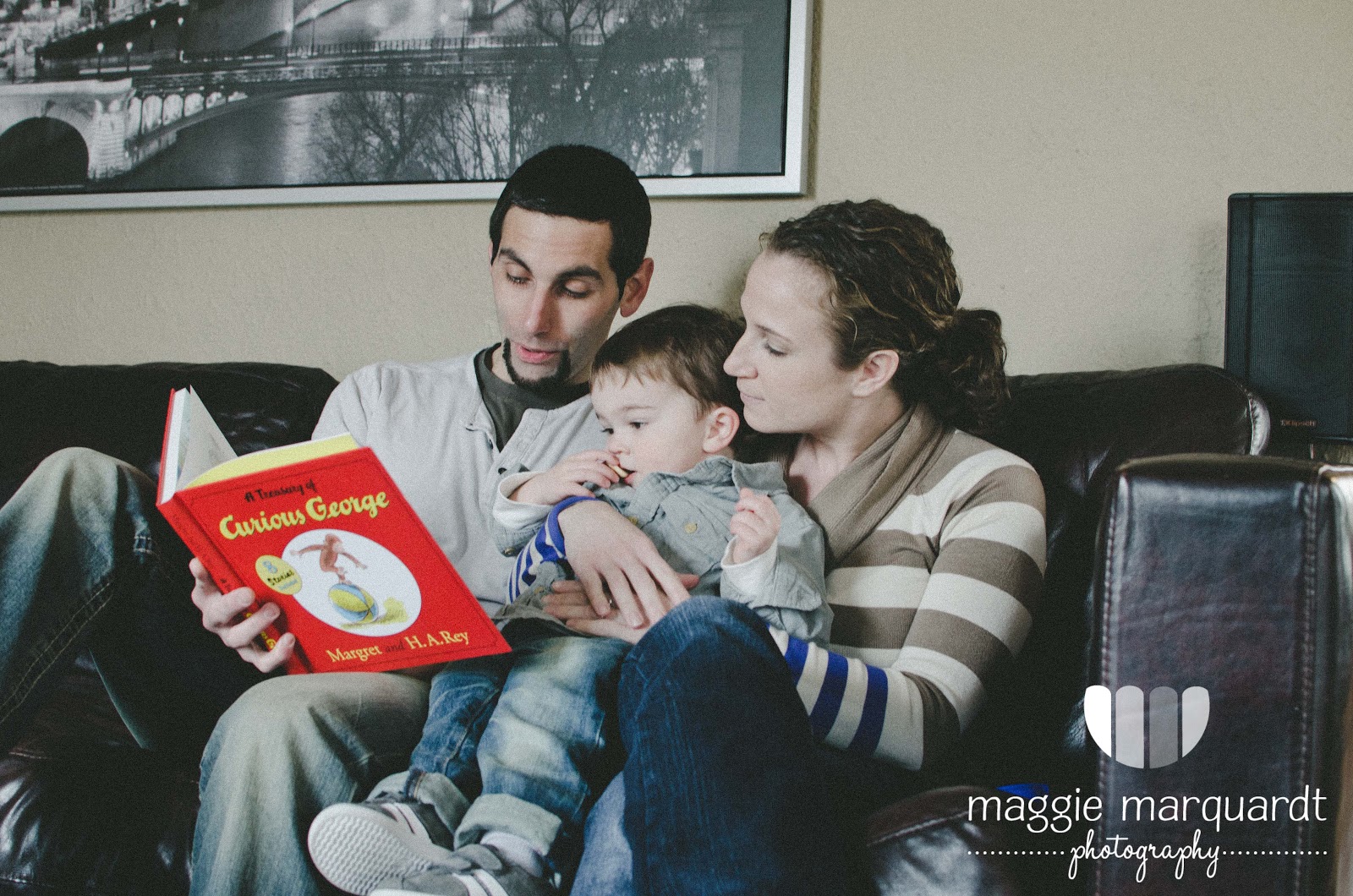 Well, a cold day in January can mean you're enjoying time indoors snuggling with your favorite little guy and that doesn't sound too shabby. As I visited some of my favorite clients, I enjoyed watching this little guy chase around the house peeking at me, playing with his cars and train, then cuddling up with mama & daddy for a book. We did brave going outside, which was fun for B for, oh, about 5 minutes. After wielding his sticks, he realized just how cold it was and protested (giving me some of the crying shots I always hope for - they are so great sometimes!)